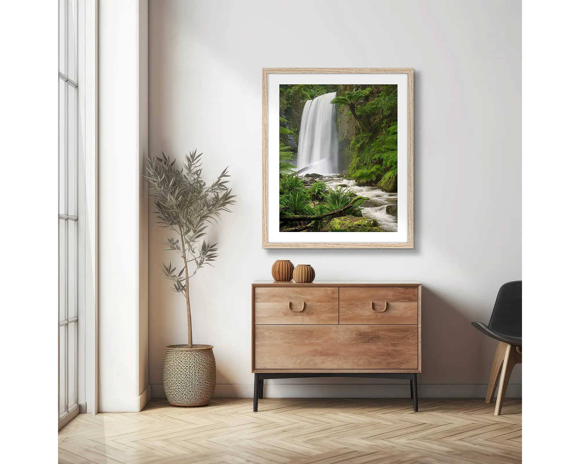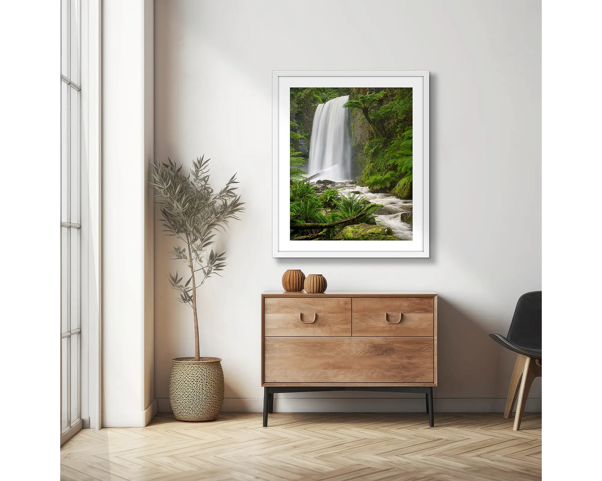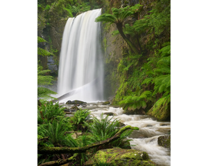 Immerse yourself in the beauty of the Otways with this photograph of Hopetoun Falls. Capturing the waterfall plunging into the lush temperate rainforest below, this artwork brings the serenity and power of nature into your space. The cascading water, framed by rich green ferns and moss-covered rock, evokes calm, renewal and timeless natural energy. Perfect for any home or office seeking a tranquil connection to Australia’s landscapes.