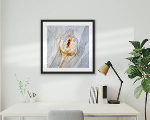 //www.scottleggo.com/cdn/shop/files/mark-of-time-abstract-wall-art-print-of-snow-gum-bark-with-white-frame-hung-in-home-office..webp?v=1761091412 1.25