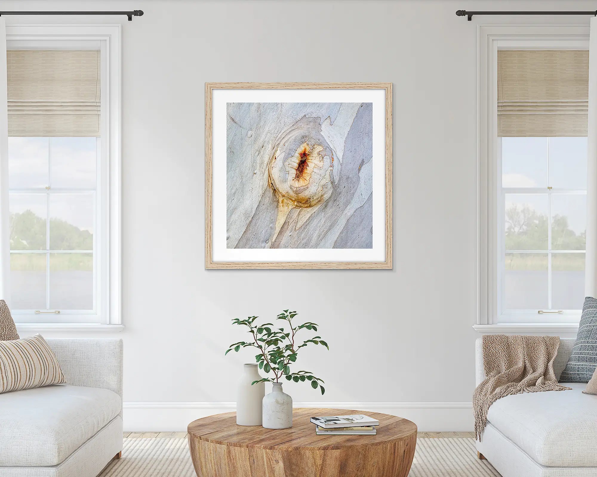 //www.scottleggo.com/cdn/shop/files/mark-of-time-abstract-wall-art-print-of-snow-gum-bark-with-white-frame-hung-in-lounge-room.webp?v=1761091412 1.25