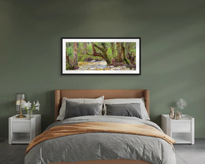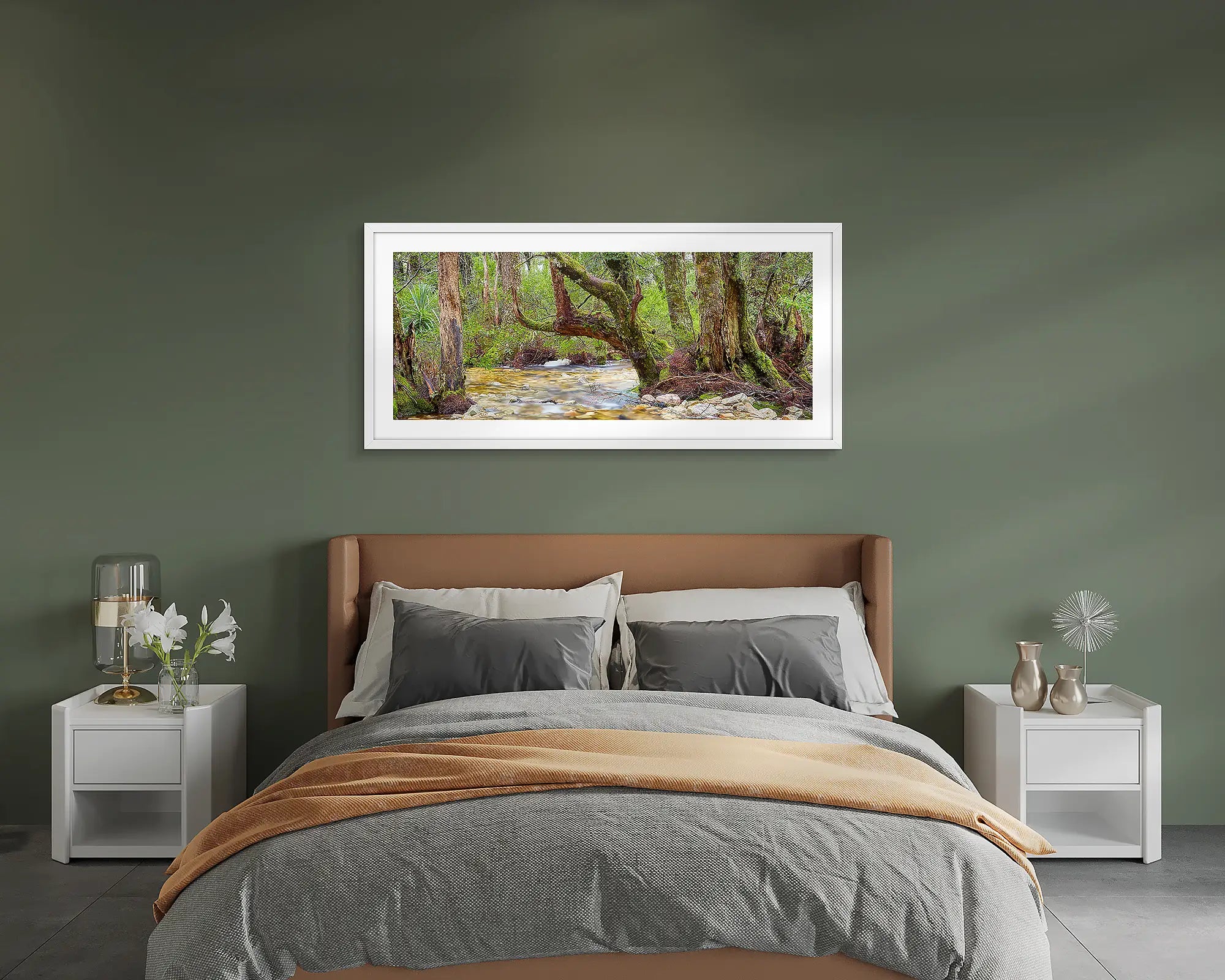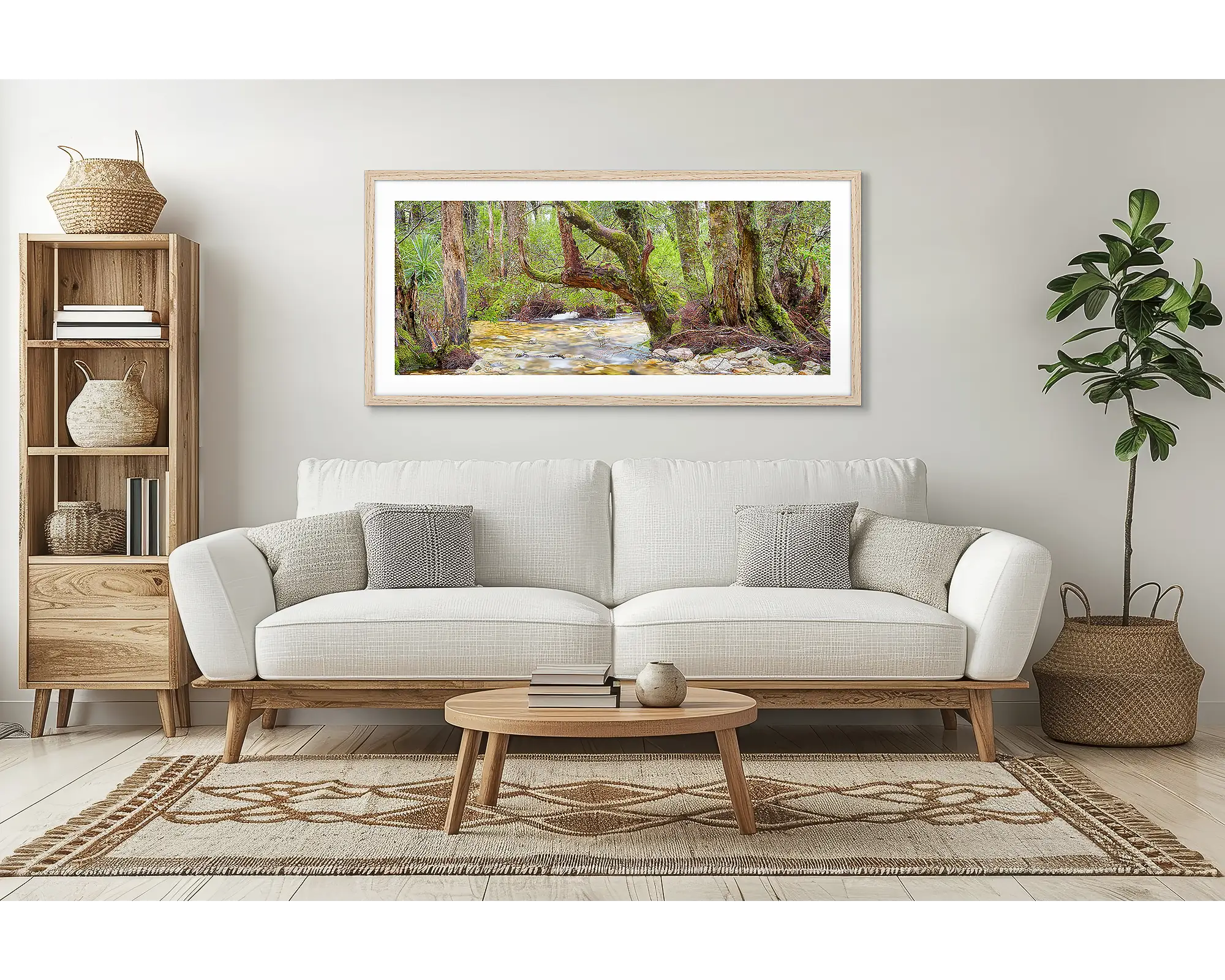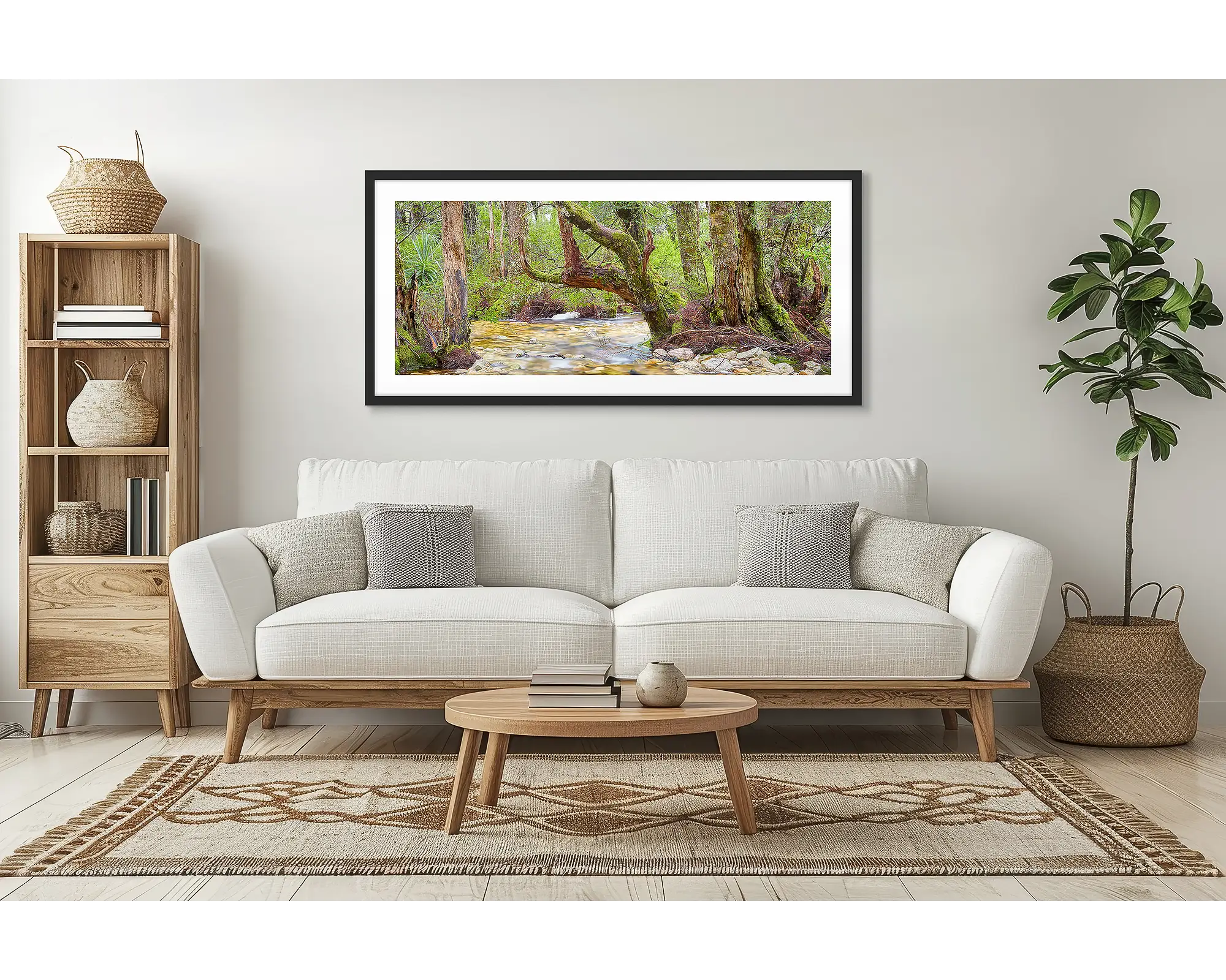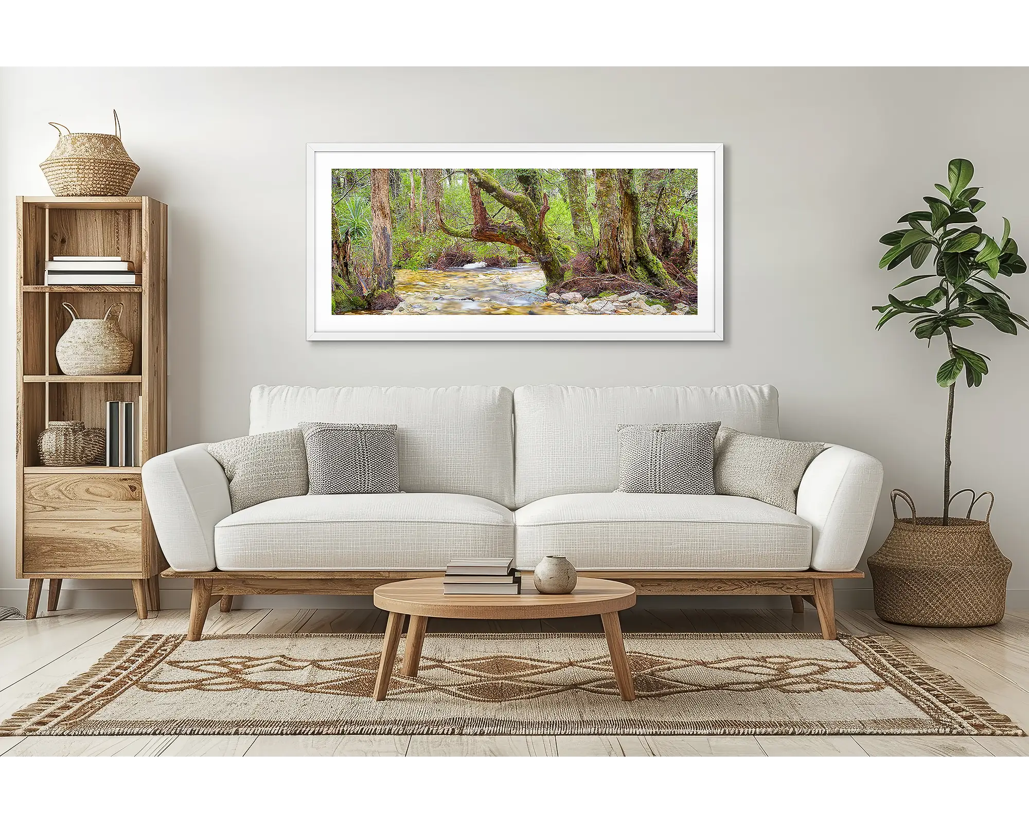 Experience the charm of Tasmania's Cradle Mountain - Lake St Clair National Park, with this wall art print. Capturing a clear creek amongst the ancient forest, this print will transport you to this world heritage area no matter where you choose to hang it.