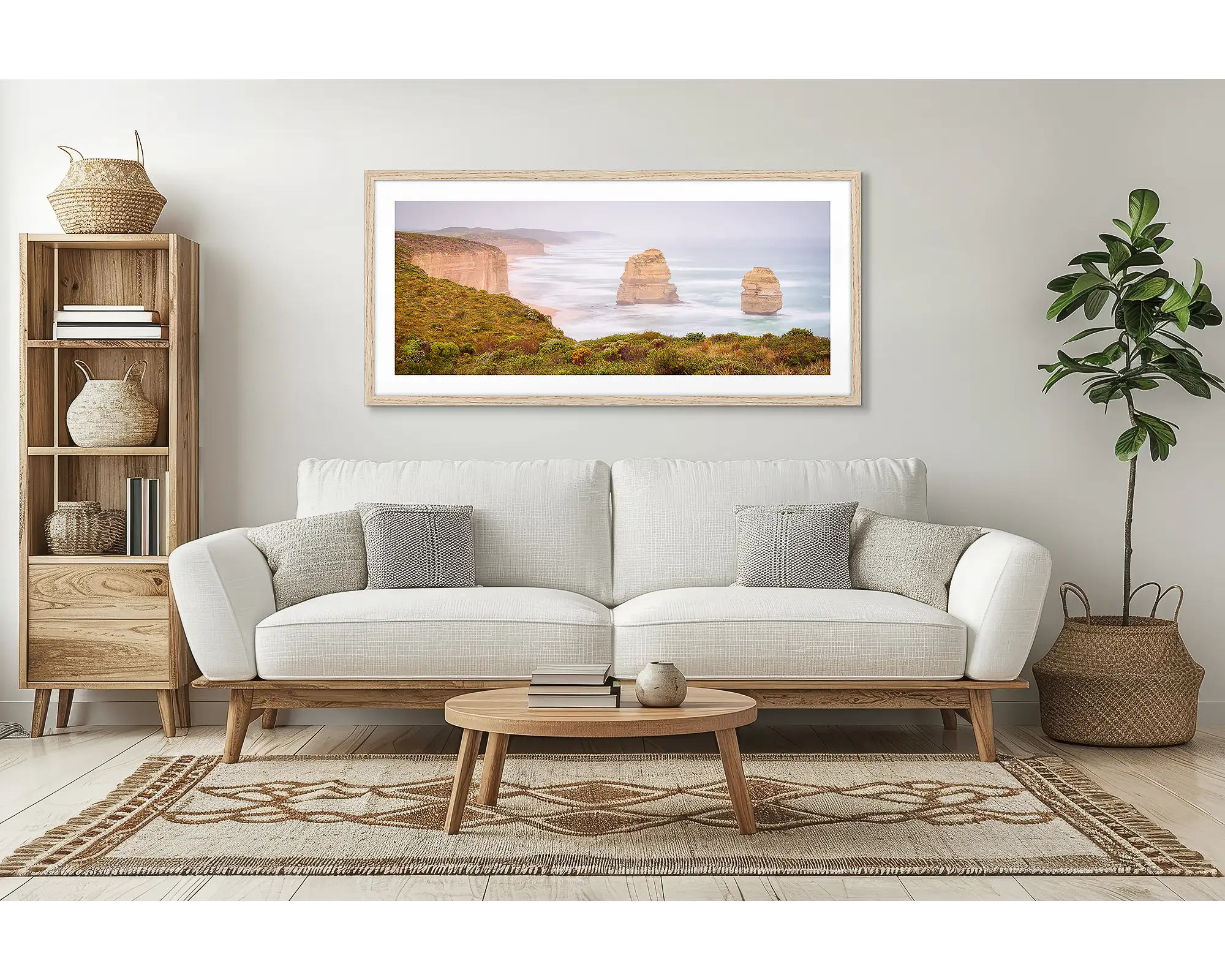 Bring something home from Australia's famous Great Ocean Road with this wall art print of the popular Gog and Magog limestone stacks. Ideal for if you want to experience a little of the mood and drama that has shaped this rugged coastline for tens of millions of years.