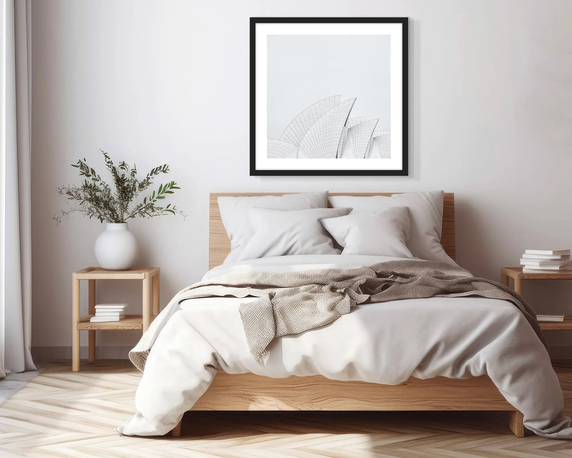Celebrate the architectural beauty of the Sydney Opera House with this abstract wall art print. Showcasing the details of the Opera House sails, this is perfect if you're wanting a contemporary architectural print in your interior. Choose a white frame for a subtle look, or go with a black frame for a bold statement piece.