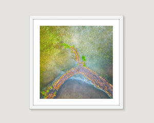 Delve into the captivating allure of Scott's DIVERGENT wall art print. An abstract aerial composition capturing Lake George, this unique image unveils earthy tones, creating a visually engaging and harmonious abstract landscape. Perfect for those who appreciate abstract photography and earth inspired palettes.