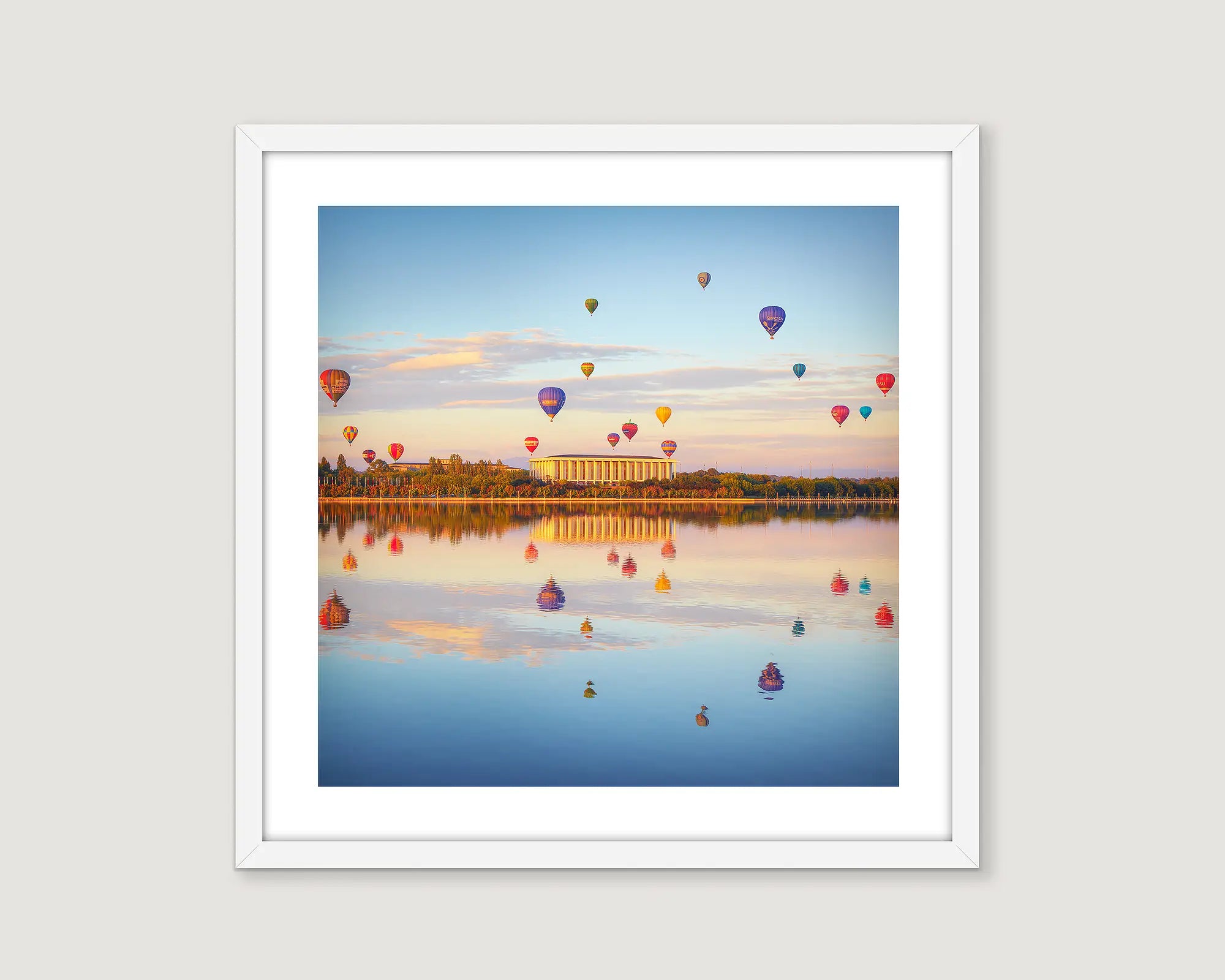 An enchanting and vibrant print that will transform your space. This captivating image, brings the magic of the Canberra Balloon Spectacular straight to your walls. Wake up to the beauty of hot air balloons gracefully floating against the early morning sky. The play of colours, from the soft hues of dawn to the vivid and lively balloons, creates a happy visual symphony. This wall art is not just decor; it's an experience, a daily escape to the tranquility and wonder of Canberra's iconic event. If you're looking to bring the enchantment of a Canberra morning into your living space, this wall art is a perfect choice.